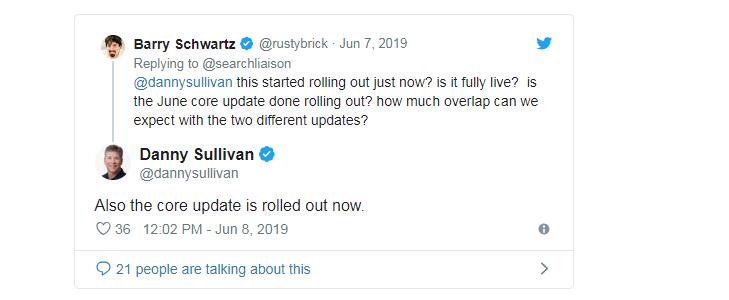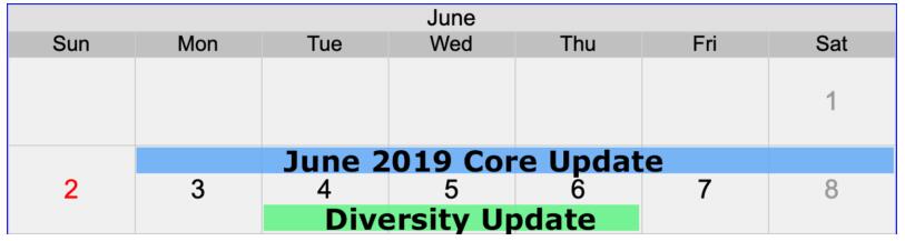 更新與另一個更新重疊。2019年6月的核心更新確實與多樣性更新重疊。Google核心更新于6月3日至6月8日開始,Google多樣性更新于6月4日至6月6日開始。